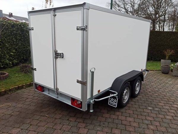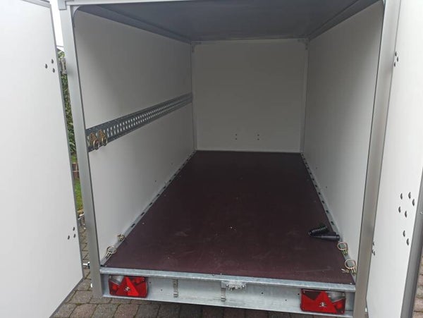 Gesloten aanhangwagen, PowerTrailer, met wielen naast de bak.